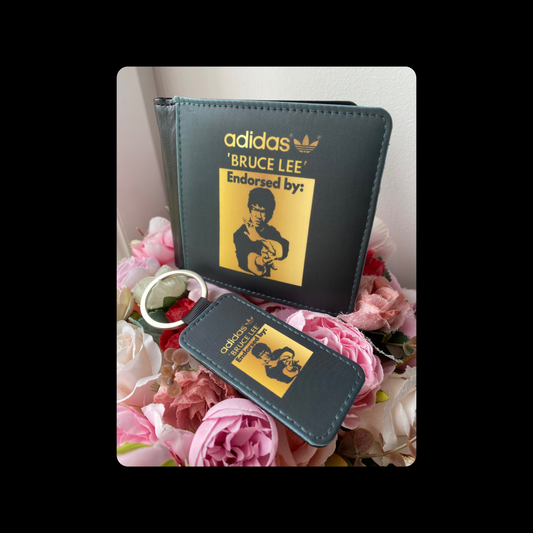 Adidas Endorsed By Bruce Lee Black & Gold PU Material Wallet & Keyring