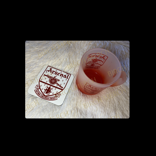 Arsenal 1949-1990 Badge 11oz (330ml) Red Two Tone Frosted Mug & Coaster Set