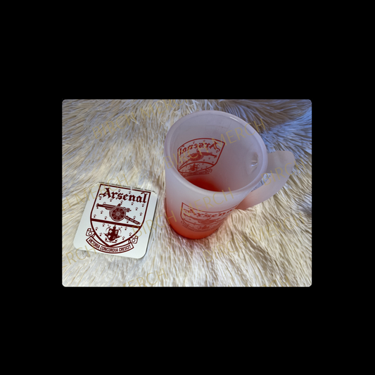 Arsenal 1949-1990 Badge 16oz (474ml) Red Two Tone Frosted Stein Mug & Coaster Set