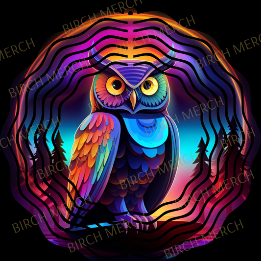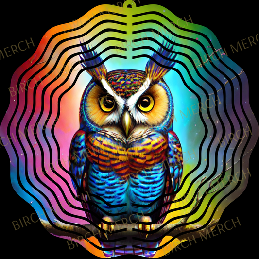 Owl Double Sided (2 Different Images) Aluminium Metal Wind Spinner Design 1