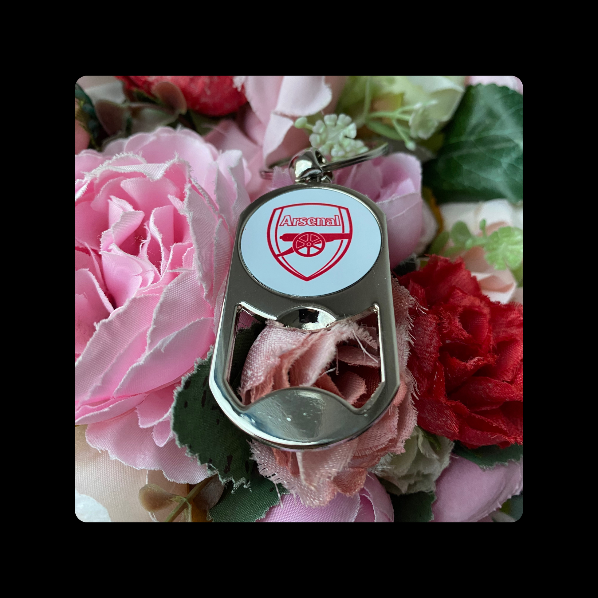 Arsenal Badge Red & White Metal Keyring Bottle Opener 5cm x 2.7cm