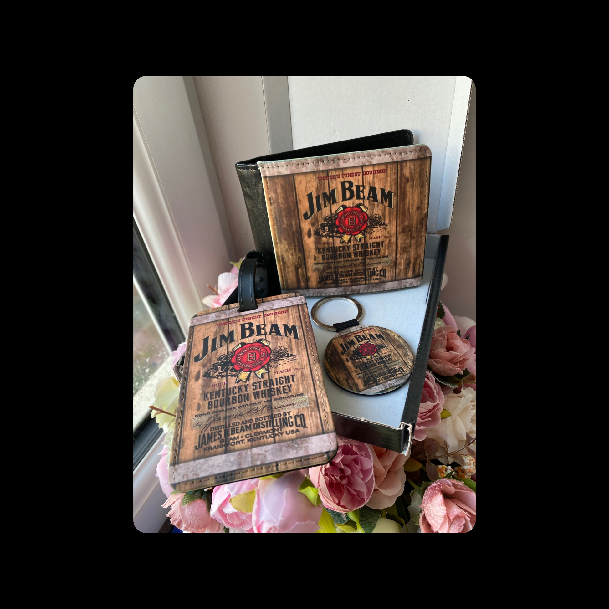 Jim Beam Bourbon Whiskey Barrel PU Material Wallet, Luggage Tag & Keyring