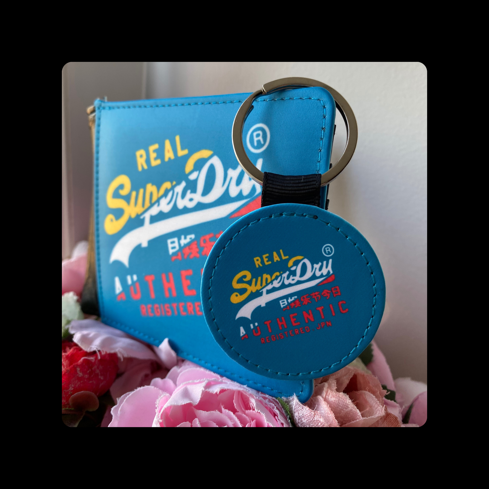Superdry Three Colour Logo PU Material Wallet & Keyring